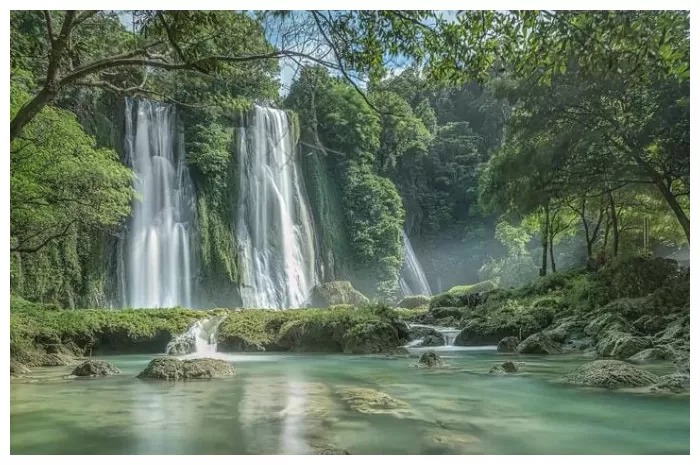 Curug Cikaso adalah air terjun spektakuler yang terdiri dari tiga aliran air terjun yang besar dengan kolam alami berwarna hijau toska di dasarnya. Terletak di Sukabumi, Curug Cikaso dikelilingi oleh hutan hijau yang rimbun, menciptakan suasana alami dan asri.